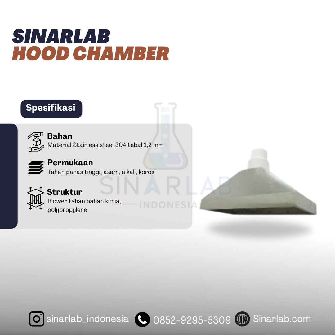 Hood Chamber atau biasa dikenal dengan lemari asam fume hood adalah ruang tertutup pada alat fume hood yang berfungsi mengendalikan dan mengarahkan aliran udara serta asap berbahaya agar tidak keluar ke lingkungan kerja. Secara sederhana, Hood Chamber adalah ruang kerja (kamar) tertutup atau setengah tertutup yang dilengkapi dengan sistem penghisap (blower) dan saluran ventilasi untuk melindungi pengguna dan lingkungan laboratorium dari paparan zat berbahaya. Jadi, ini bagian penting buat safety di lab supaya udara tetap bersih dan aman.