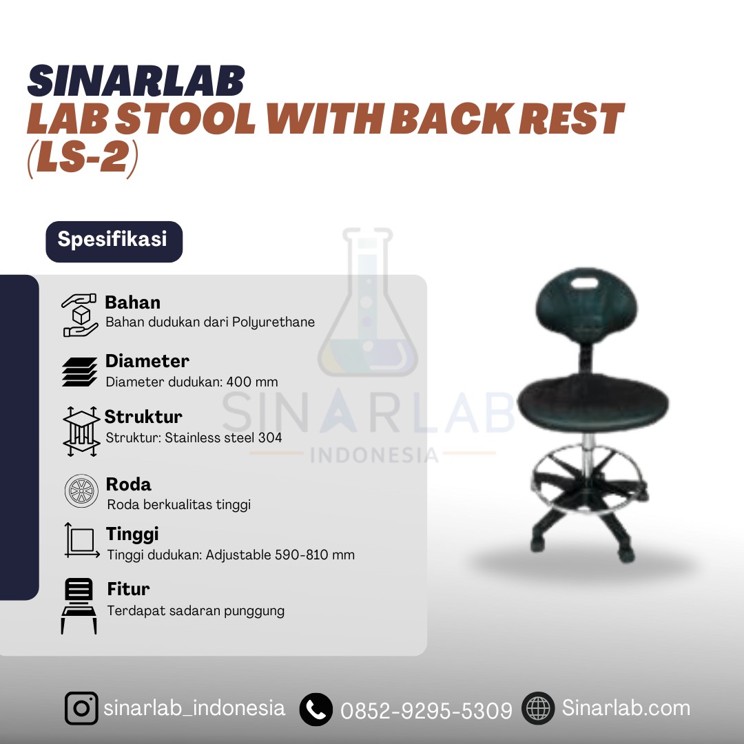 Lab Stool with Back Rest (LS-2) adalah jenis kursi yang dirancang untuk digunakan di meja kerja atau bench laboratorium yang umumnya lebih tinggi daripada meja kantor standar, kursi laboratorium yang dilengkapi sandaran punggung untuk kenyamanan dan dukungan saat duduk lama. Cocok dipakai di laboratorium agar postur tetap baik dan tidak cepat lelah.